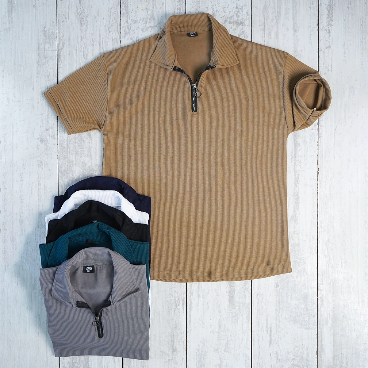 تیشرت مردانه یقه زیپ دار سرمه ای مدل Arban